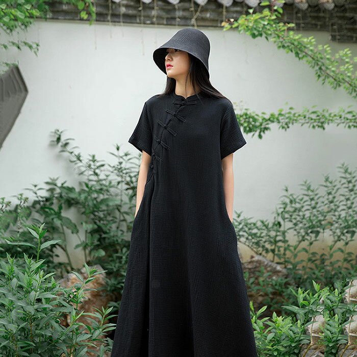 リネン ワンピース 麻 レディース 大きいサイズ 春 夏 半袖 きれいめ 無地 ロング 着痩せ 女性・・・