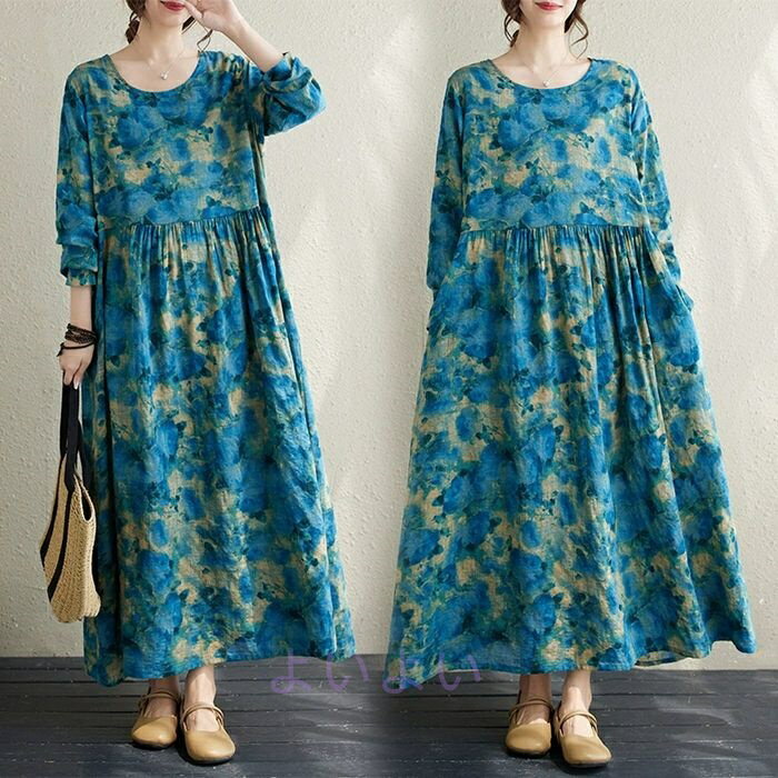 きれいめ 大人 長袖 膝下 秋 マキシ丈ワンピース 30代40代50代 着痩せ リゾートワンピース ・・・