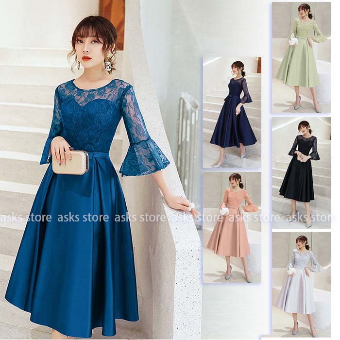 レースワンピース ドレス 上品 ワンピース パーティードレス 春秋 送料無料 フォーマル ワンピース レディース 長袖 春 秋 お出かけファッション かわいい