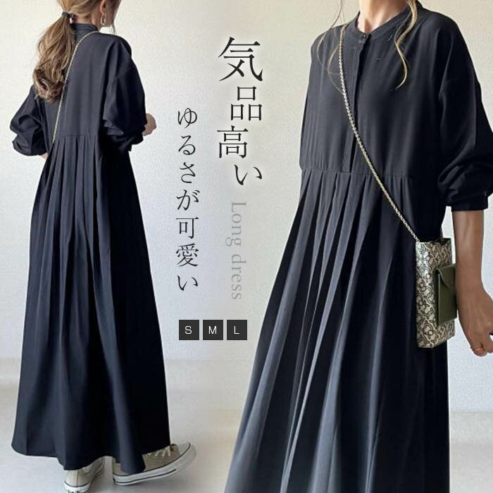 長袖ワンピース レディース 秋 長袖 ワンピース マキシ丈 Aライン フレア ワンピース 気質アップ ゆったり 体型カバー 大きいサイズ シンプル 30代 40代 50代 母の日
