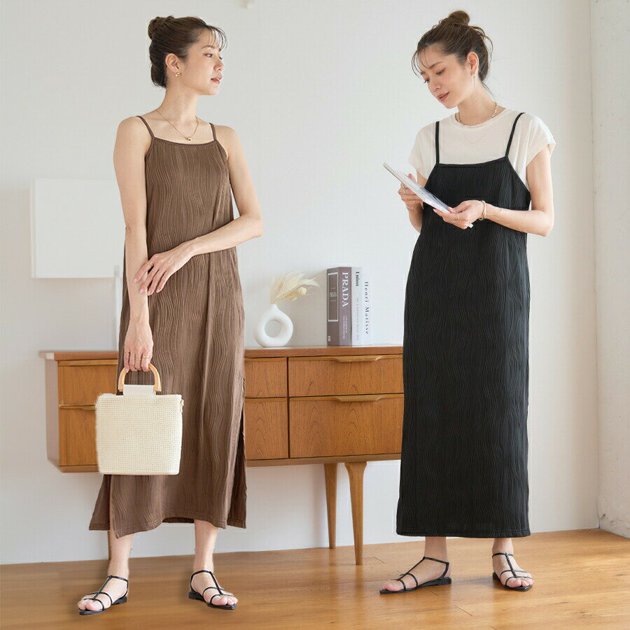 シワになりにくい ウェーブプリーツ キャミワンピース 着やせ 楽ちん ママ向け プリーツワンピース シンプル おしゃれ 毎日コーデ 30代 40代 50代 服 レディースファッション トレンド