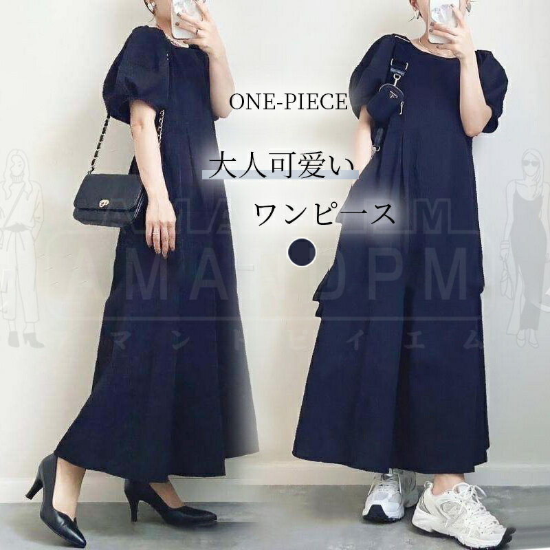 ワンピース レディース 40代 きれいめ ロングワンピース マキシ 春夏 半袖 フォーマル ボリューム Aライン オシャレ 無地 大人