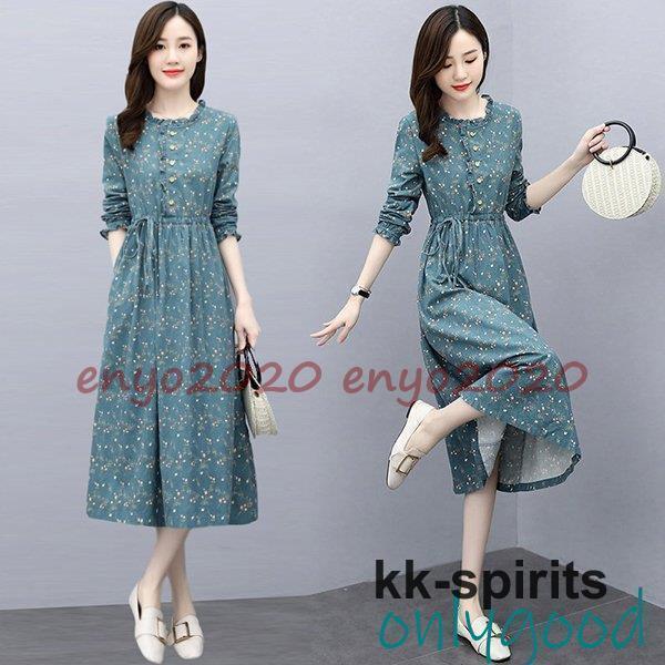 コーデュロイワンピース 大人可愛い 簡単コーデ ロングワンピース 春 コーデュロイ ワンピース ロン・・・