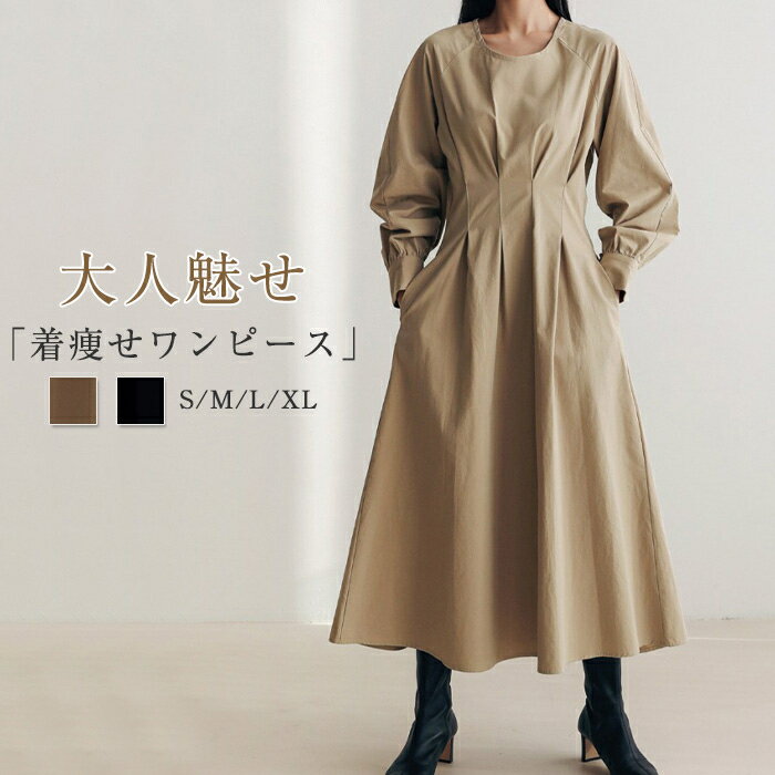 ワンピース レディース春 秋 きれいめ ワンピース Aライン 長袖ワンピース ロングワンピース マキ・・・