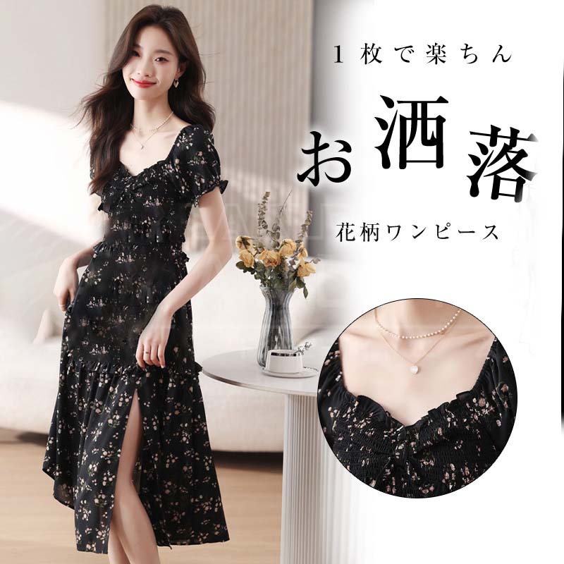 花柄 ワンピース レディース 半袖 夏 大人 フォーマル フレア ワンピース aライン ミモレ丈 v・・・
