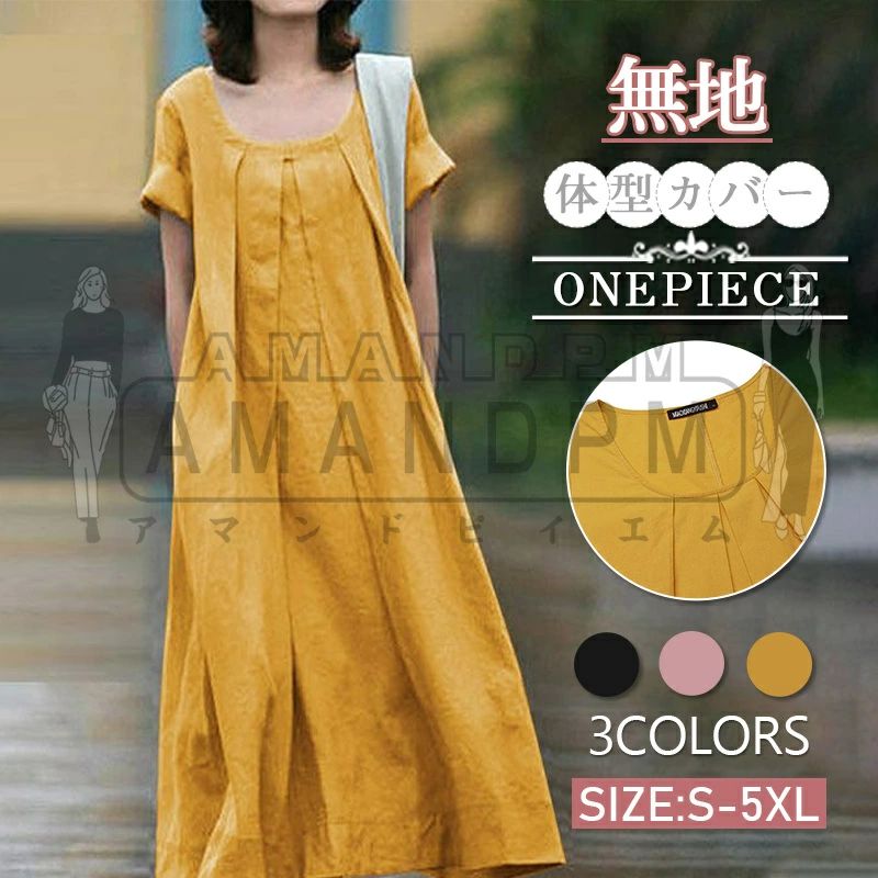 ワンピース レディース 50代 夏 40代 ロングワンピース 無地 ワンピース きれいめ 体型カバー・・・