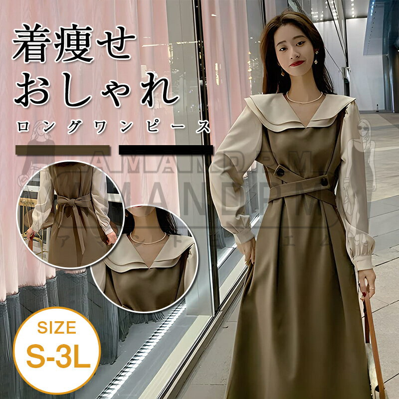 ワンピース 長袖 ロング 秋冬 レディース 切り替えワンピース ロングワンピース ロングワンピ ロン・・・