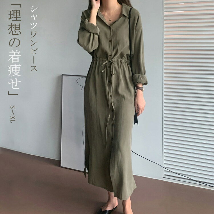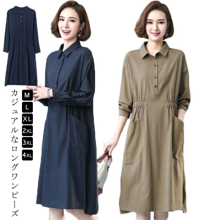 ワンピース レディース 春秋 長袖 おしゃれ きれいめ ロング丈ワンピース シャツワンピース 韓国風 通勤 OL 大きいサイズ 40代 30代 50代 新作 着痩せ 人気 カジュアル ゆったり シンプル
