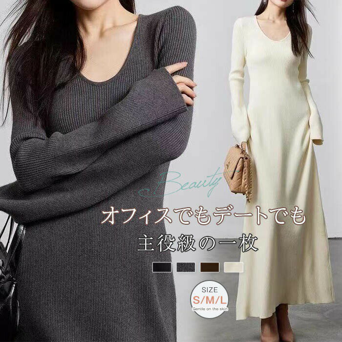 ニット ワンピース レディース きれいめ カジュアル 秋 冬 秋冬 ロング 長袖 韓国 Aライン イ・・・