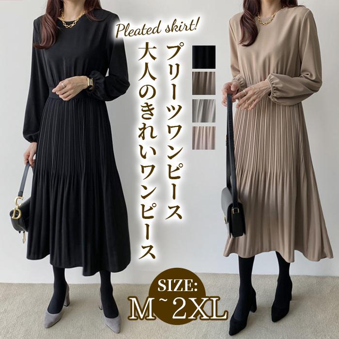 ワンピース 春 レディース 春夏 秋 長袖 きれいめ プリーツワンピース フォーマル 結婚式 ロング・・・