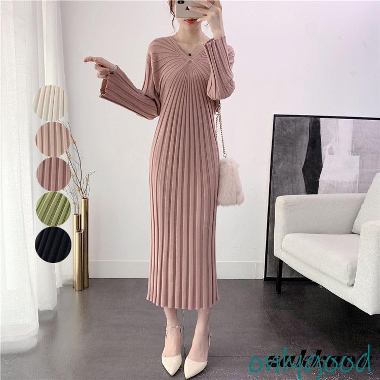 【期間限定10%OFF】ニットワンピース レディース Vネック ワンピース 秋 冬 長袖 きれいめ ・・・
