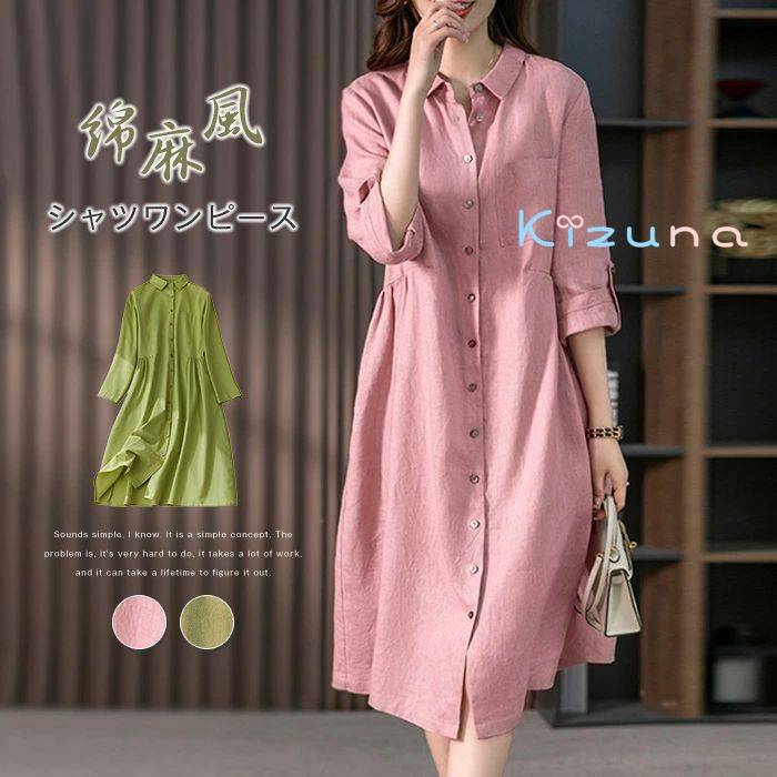 綿麻ワンピース シャツワンピース ロングシャツワンピース 大き
