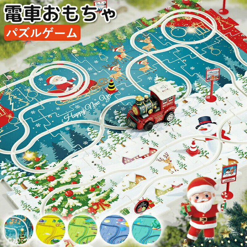 電車おもちゃ 自動進む パズル レール 子供 車付き 飛行機付き 電車付き クリスマス 恐竜 森 宇・・・