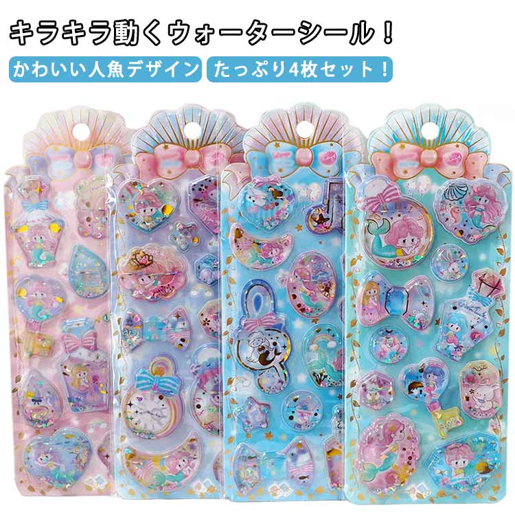 ぷっくりシール 幼稚園 【4枚セット】ウォーターシール 3D立体 ぷくぷくシール 人魚 【4枚セット・・・