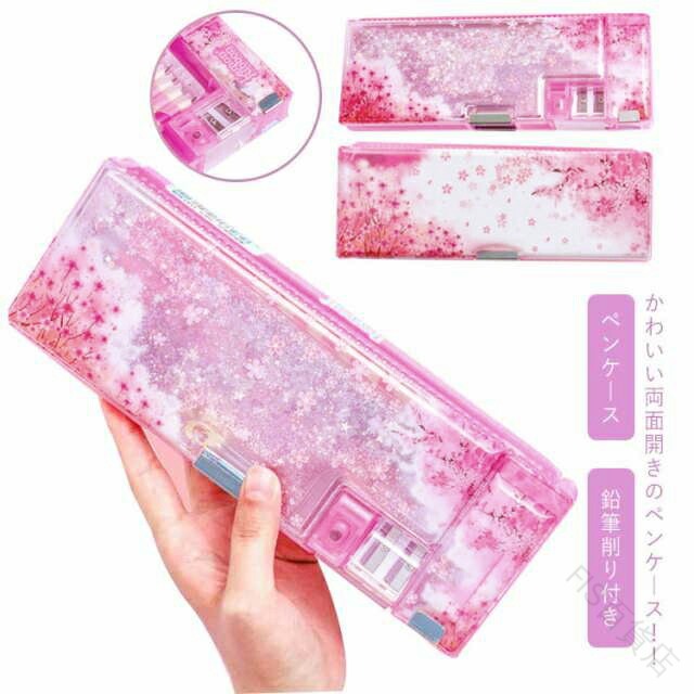 小学生の女の子に最適 鉛筆削り付き大容量ペンケース 両面開きマグネット式で使いやすく入学祝いにもおすすめ
