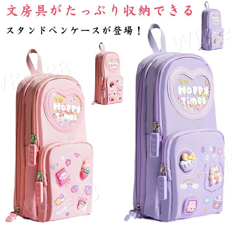 ふでばこ 小学生 かわいい 収納 縦型 シンプル 入学準備 自立スタンド型 筆箱 キラキラ 可愛い ・・・
