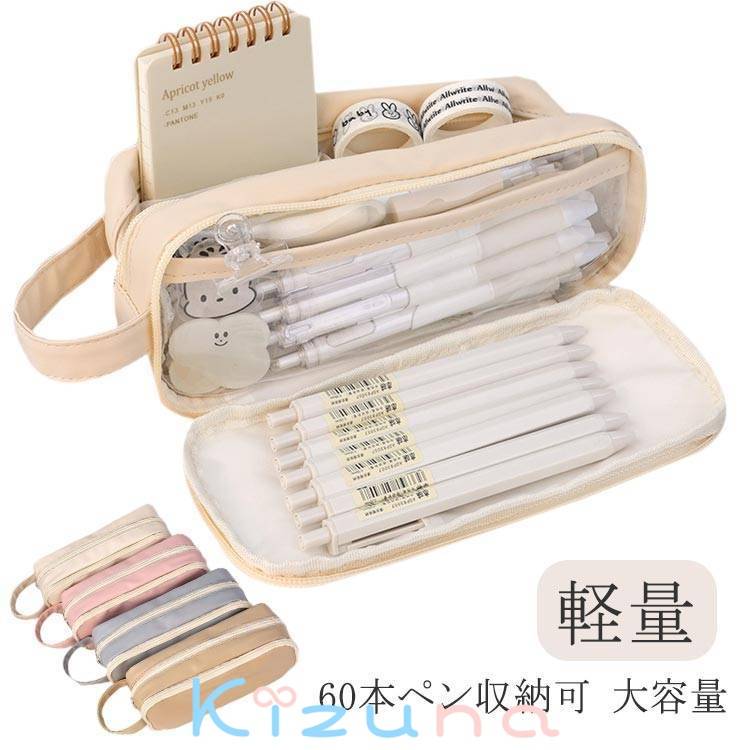 100本ペン収納可の大容量!ペンケース単品筆箱ふで箱可愛いおしゃれ韓国風クリア見える高校生中学生多機・・・