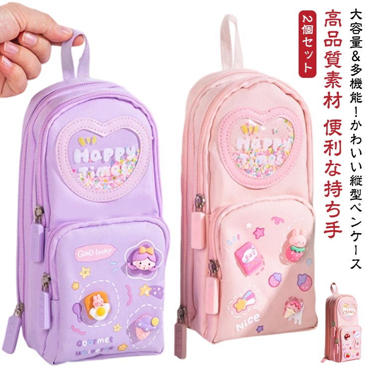 ペンポーチ 自立スタンド型 縦型 キャンバス 小学生 筆箱 【2個セット】 可愛い 女の子 大容量 ・・・