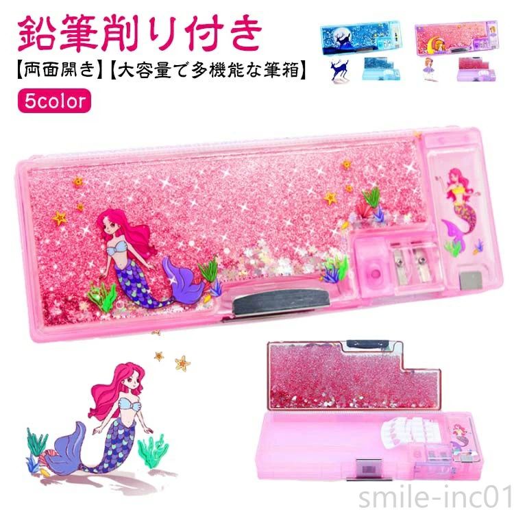 大容量 両面開き 多機能 鉛筆削り付き おしゃれ 箱型 文具 筆入れ マグネット 流砂 女の子 可愛・・・