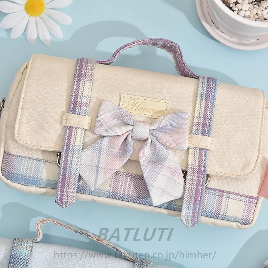 かわいい かばん型 ペンケース チェック柄 リボン付き 筆箱 大容量 可愛い 蝶結び 中学生 小学生・・・