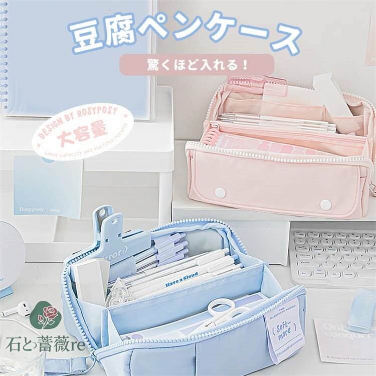 豆腐ペンケース ペンポーチ 大容量 可愛い 文房具 ふで箱 学生 四角い おしゃれ 筆記用具 便利 ・・・