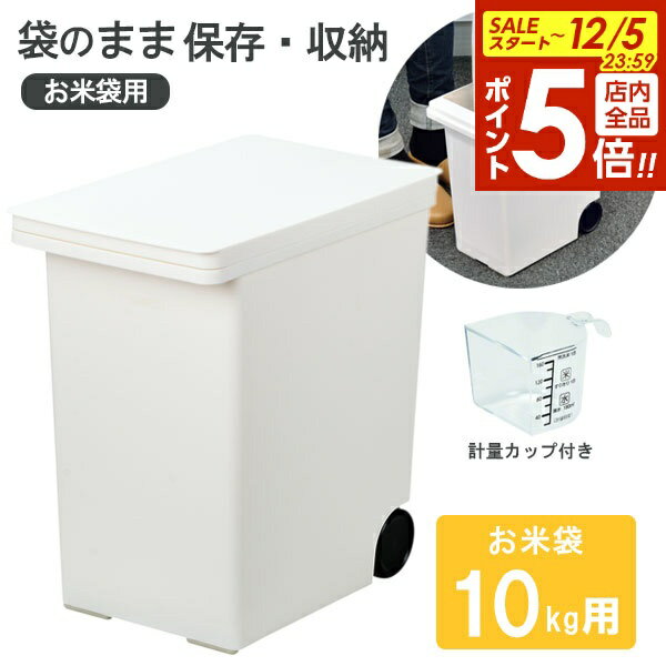 袋のまま保存 米びつ 10kg用 HB-5422 | 計量カップ付き シンプル 米櫃 キャスター付き・・・