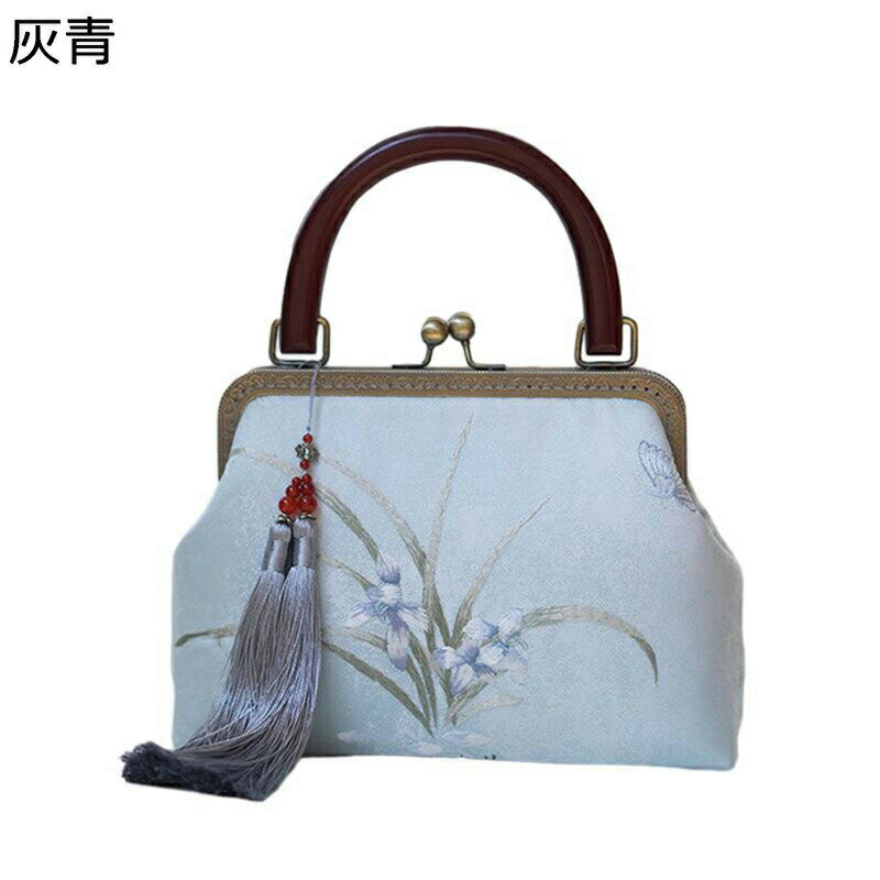 パーティーバッグ 木製ハンドル レディース クラッチバッグ サテン 結婚式 がま口 刺繍 花柄 フリ・・・