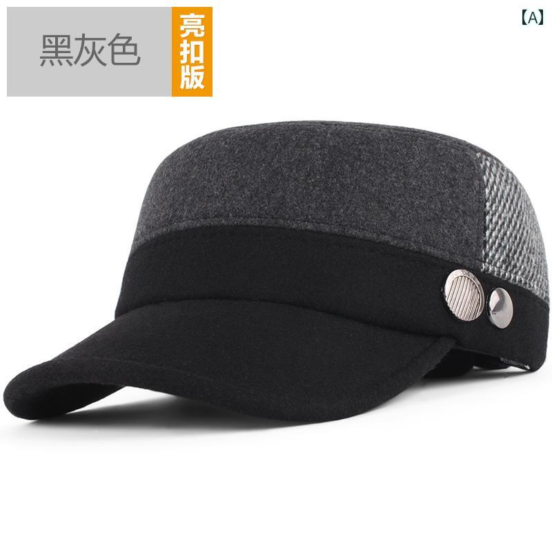 キャップ 男性用 秋冬 ウール 暖かい 厚手 軽量 カーブつば 野球帽 耳当てカバー付き 調節可能 ・・・