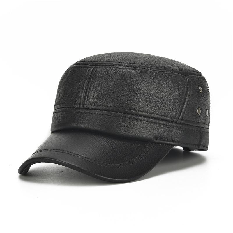 帽子 メンズ 男性用 牛革 レザー キャップ 秋冬 防寒 保温 耳当て付き フラットトップ ハット ・・・