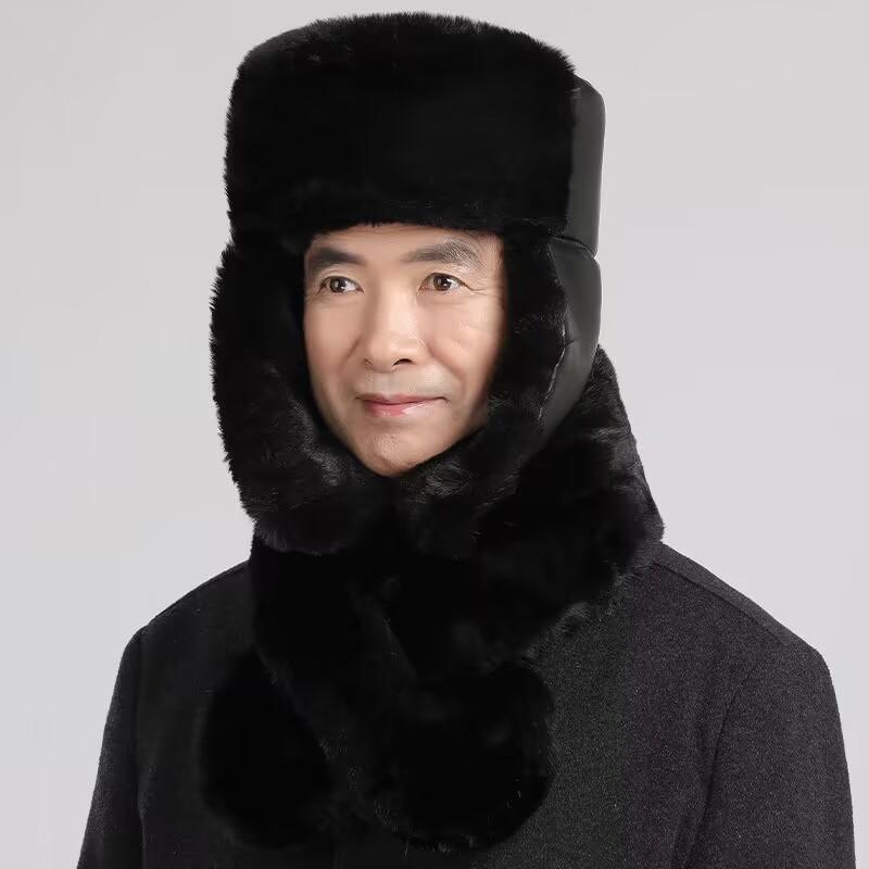 帽子 男性用 メンズ リアルファー 水貂 ファー 暖かい 防寒 耳当て付き シニア 高齢者 秋冬 ブ・・・