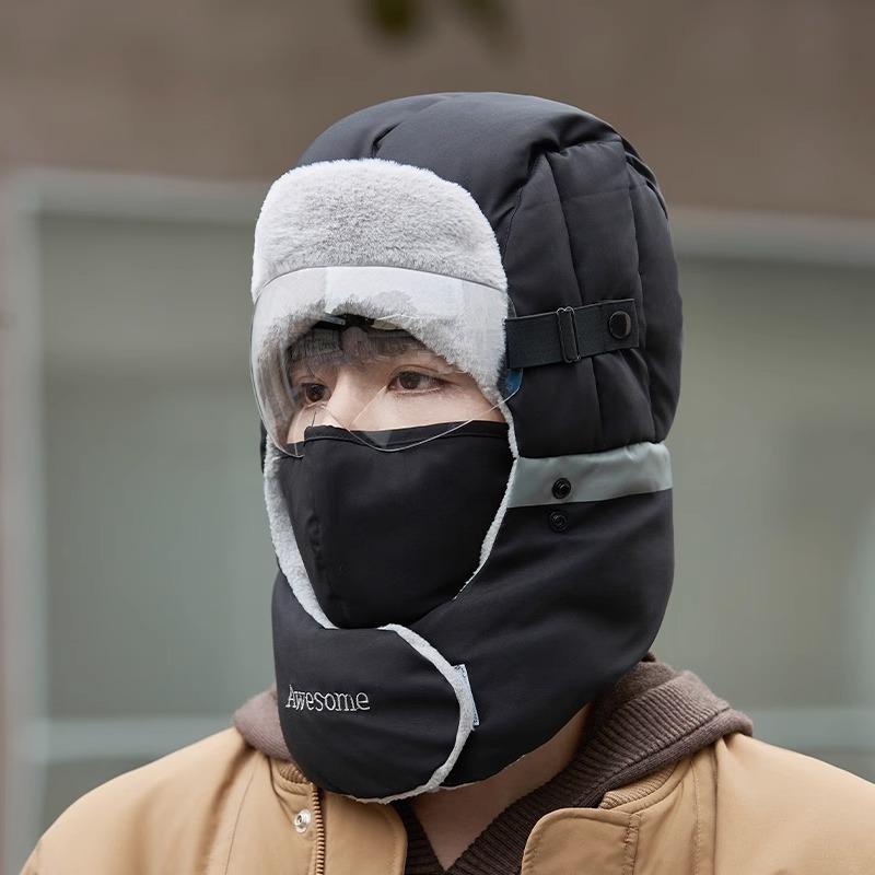 フライトキャップ メンズ 男性用 厚手 防風 防寒 フェイスマスク一体型 耳当て付き 首元ガード 保・・・