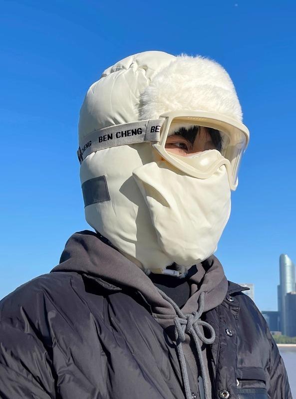 帽子 男性用 防寒 防風 イヤーマフ付き 裏起毛 暖かい 自転車 バイク 秋冬 米白・・・