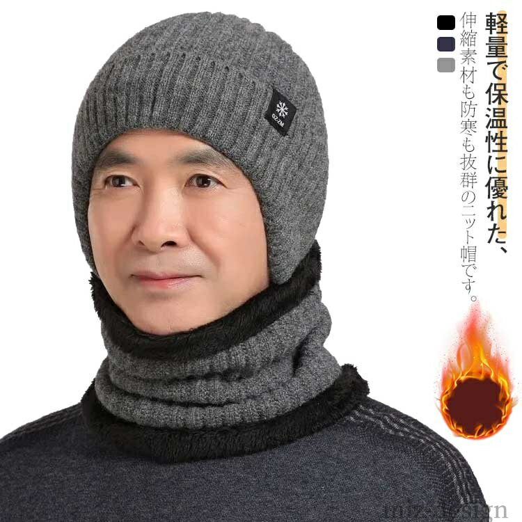 ニット帽 メンズ 男性用 秋冬 防寒 防風 裏起毛 ネックウォーマー 耳あて付き 2点セット カジュ・・・