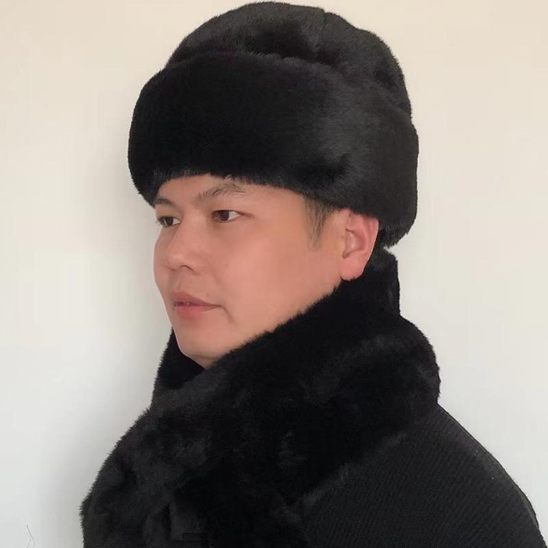 帽子 メンズ 男性用 シニア向け ミンクファーハット リアルファー 羊革 防寒 保温 耳当て付き シ・・・