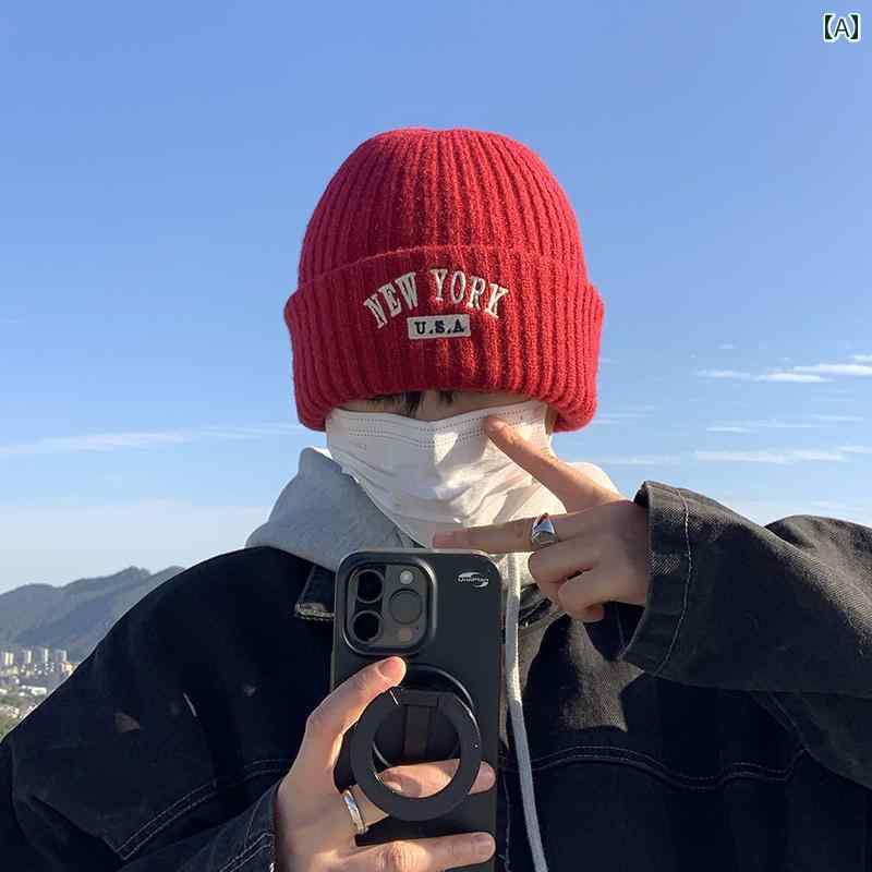 防寒帽子メンズ アメリカン スタイルの アンコラ レッド レトロ 文字 刺繍 ウール ハット( 男性・・・