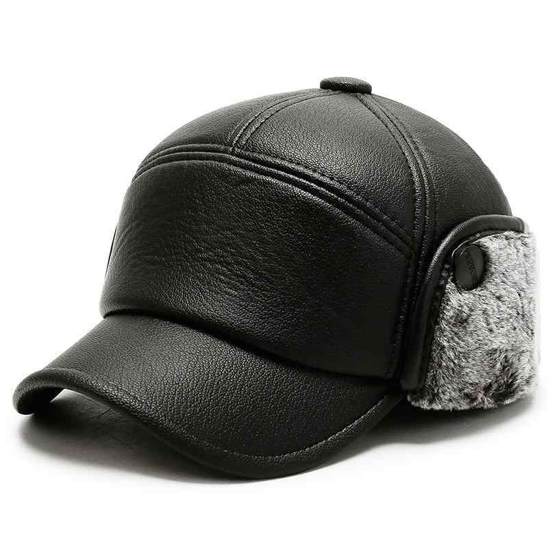 帽子 メンズ 男性 シニア 中高年 PUレザー 合皮 キャップ 野球帽 秋冬 保温 防寒 裏起毛 厚・・・