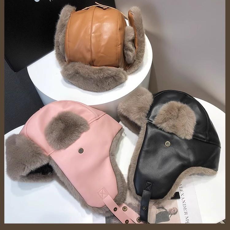 帽子 男性用 防寒 耳当て付き バイク 自転車 防風 保温 レザー 秋冬 ブラック ブラウン グレー・・・