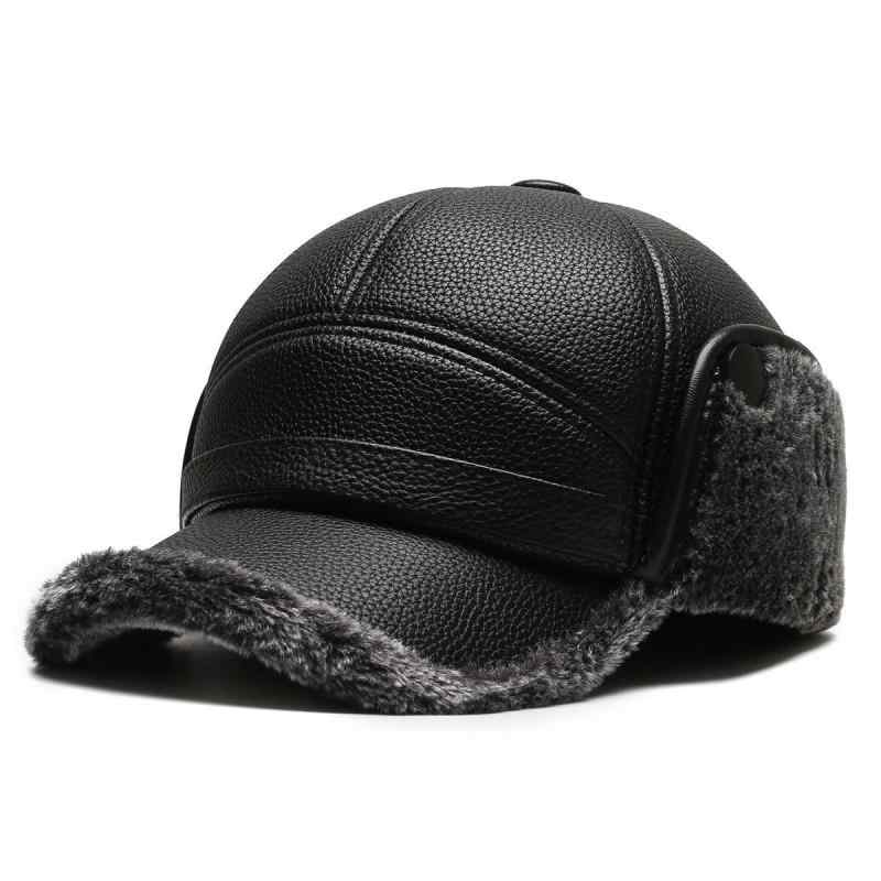 帽子 メンズ 男性用 冬用 裏起毛 暖かい 防寒 防風 イヤーマフ付き レザー キャップ 紳士 おじ・・・