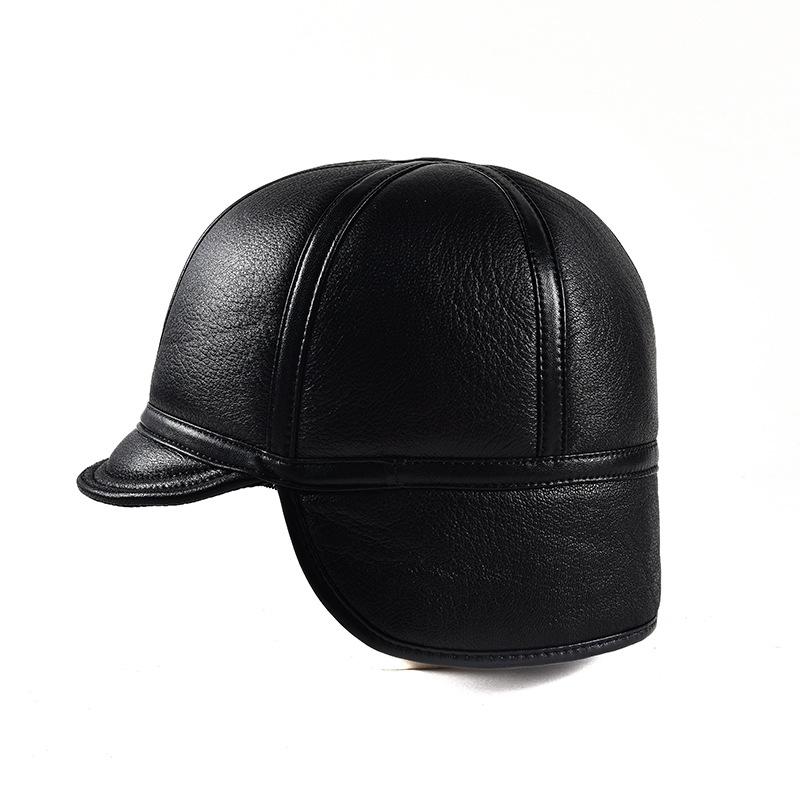 帽子 メンズ 男性用 シニア 秋冬 レザー 本革 シープスキン 羊革 耳当て付き 首元保護 防風 丸・・・
