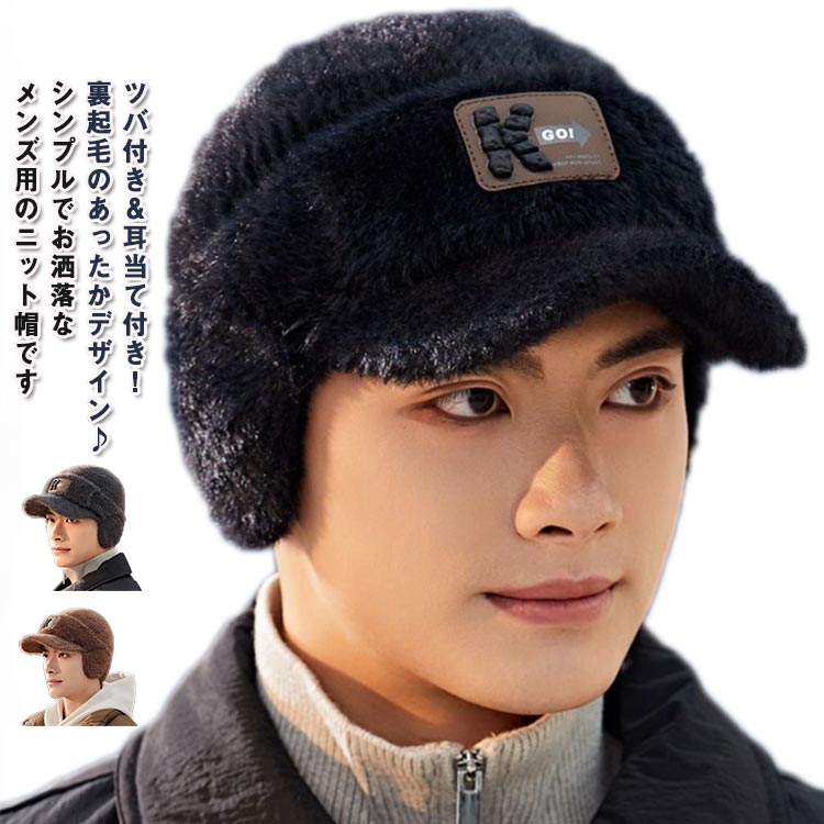 ニット帽 メンズ 耳当て つば付き 帽子 厚手 裏ボア 防寒 暖か キャスケット ニット 秋 冬 男・・・