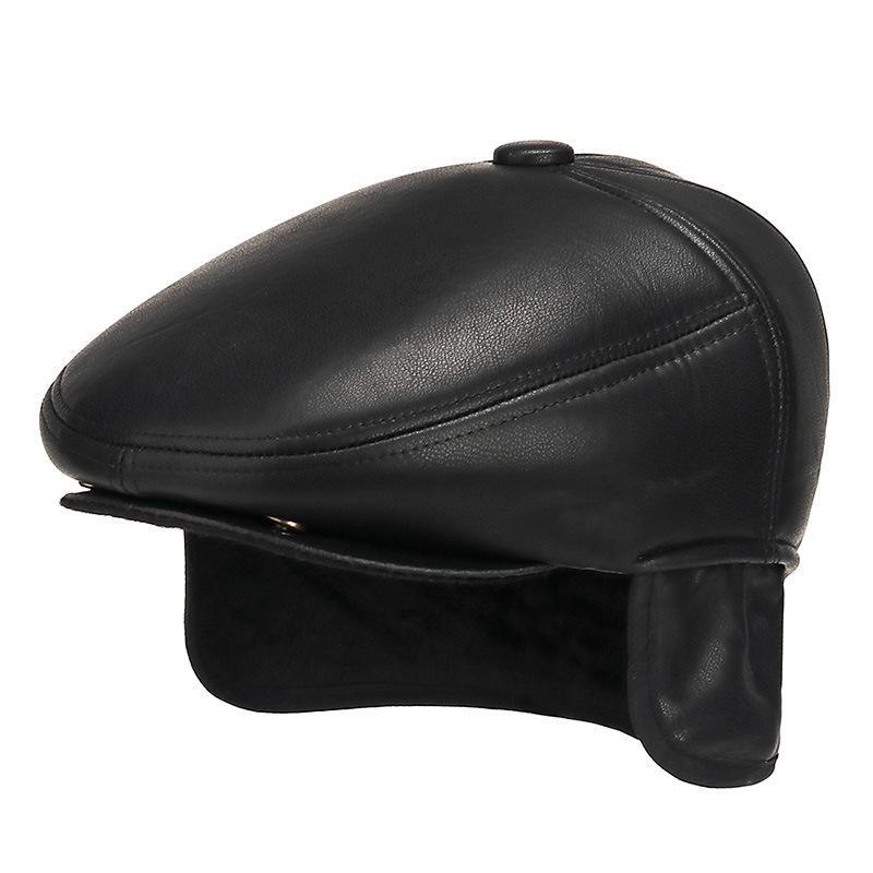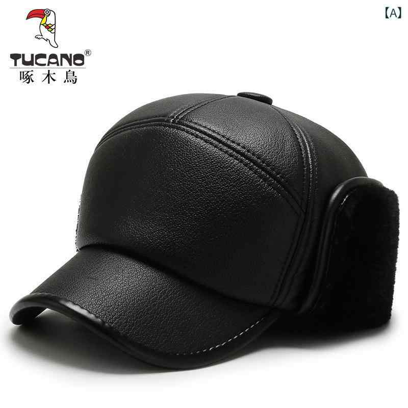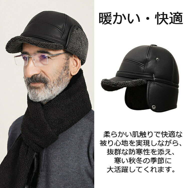 キャップ メンズ シニア 男性 秋冬 PUレザー 裏起毛 厚手 防水 防寒 保温 暖かい 耳当て付き・・・