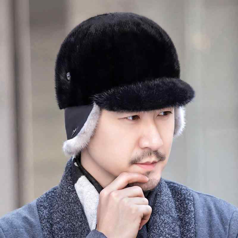 帽子 メンズ 男性用 中高年 冬物 暖かい 防寒 保温 ミンクファー 毛皮 高級感 リアルファー 耳・・・