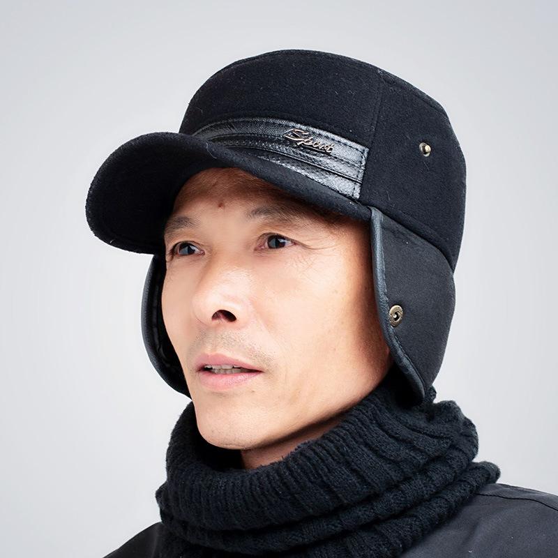 秋冬メンズニット帽 男性用 防寒耳当て付き 頭を包む帽子男性向けヘッドウェア・・・