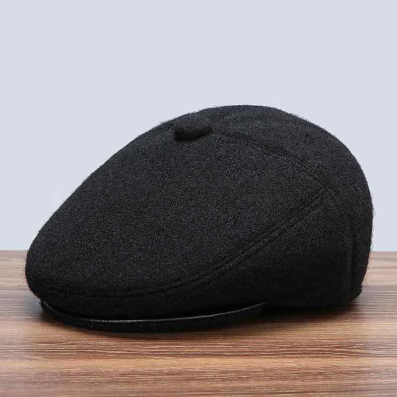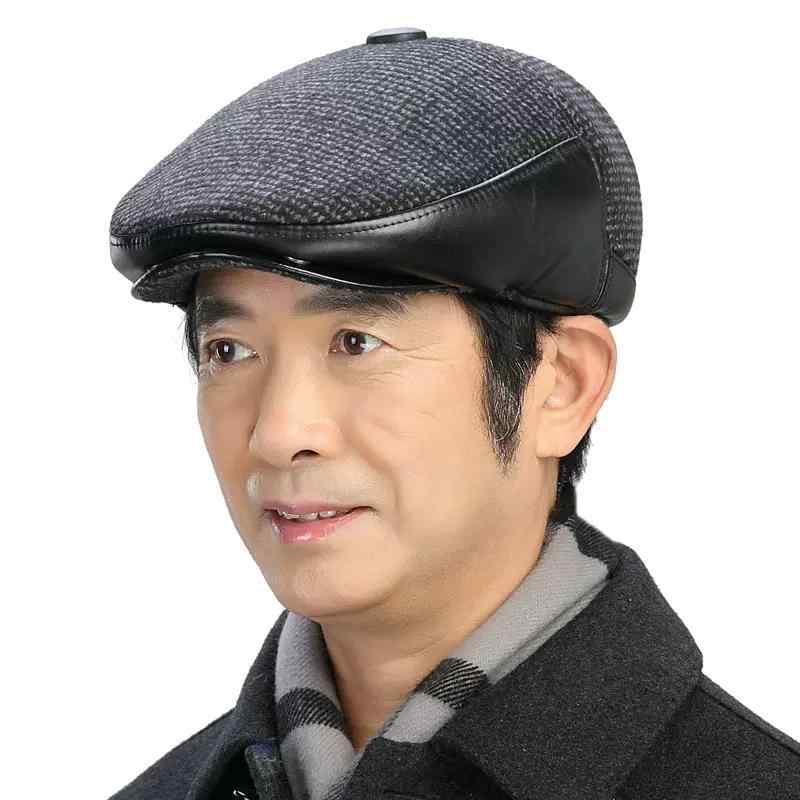帽子 メンズ 男性用 牛革 平トップハット 秋冬 防寒 暖かい イヤーマフ付き レザーキャップ 本革・・・