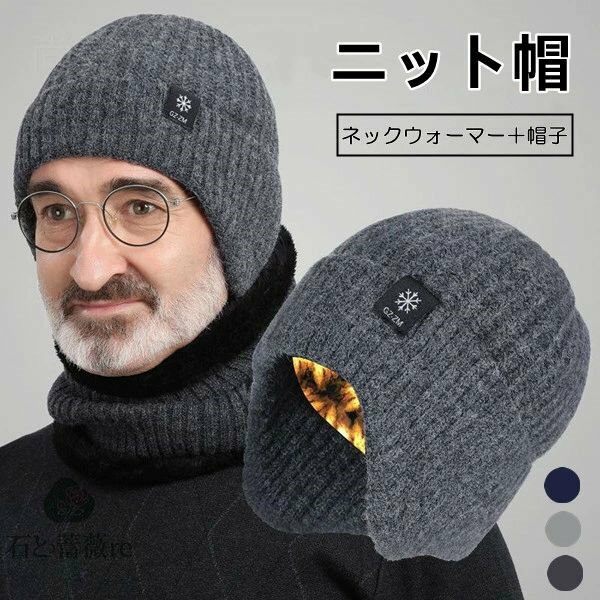 ニット帽子 耳あて付 ネックウォーマーセット 男性 メンズ 2点セ