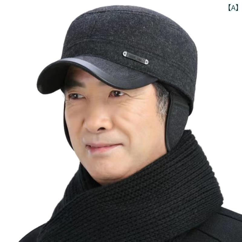 キャップ 男性用 高齢者 PUレザー 秋冬 防寒 保温 耳当て付き おじいちゃん お父さん プレゼン・・・
