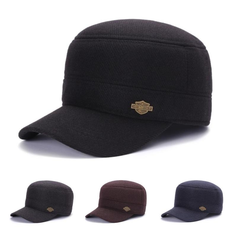 キャップ 男性用 中高年 秋冬 防寒保温 ウール メルトン 耳当て付き イヤーフラップ ダークパター・・・