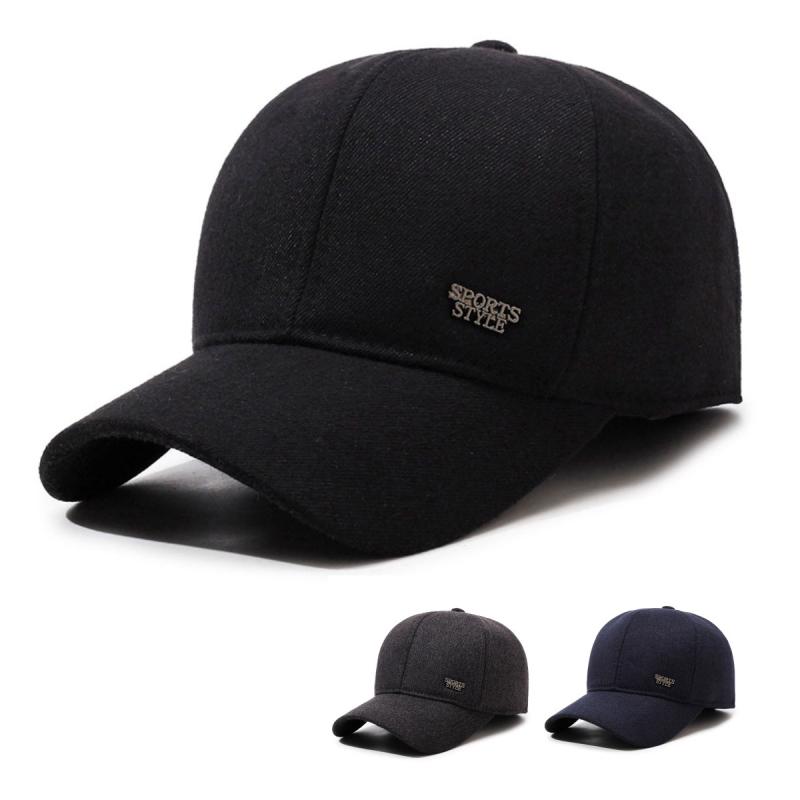 キャップ メンズ 男性用 帽子 冬用 中綿入り ポリエステル 刺繍 ベースボールキャップ 耳あて付き・・・