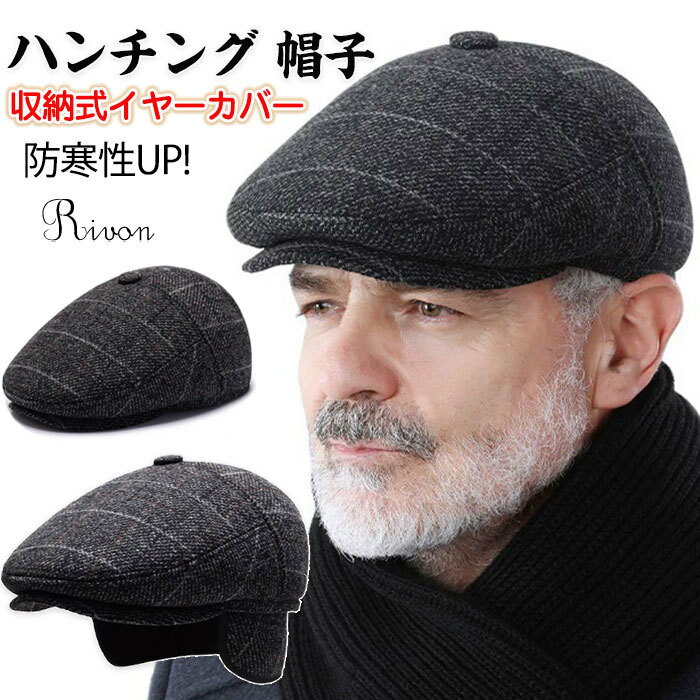 ハンチング メンズ 帽子 耳あて付き 秋冬 シニア 帽子 男性 おじいちゃん 高齢者 40代 50代・・・