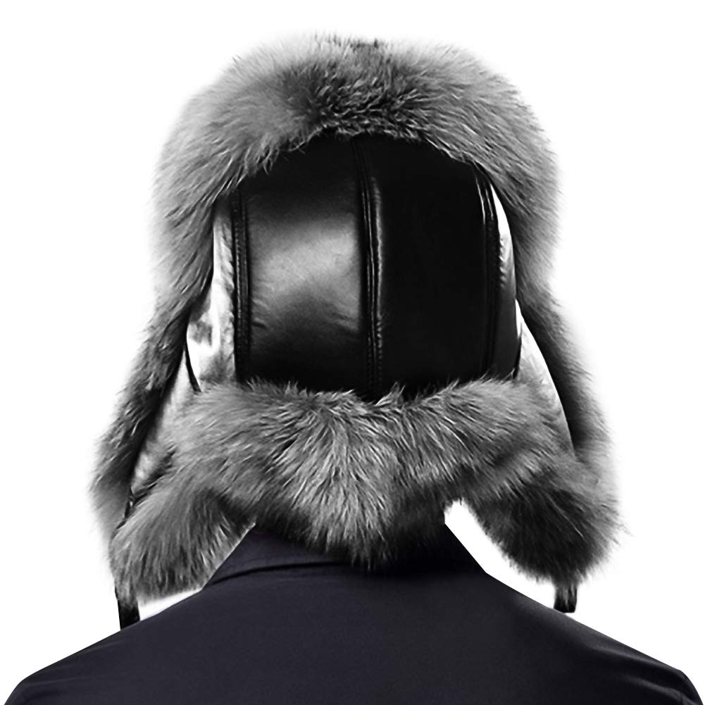 帽子 メンズ 男性用 冬用 防寒 暖かい 革 リアルファー 狐 狸 耳当て付き カフェ 調整可能 防・・・